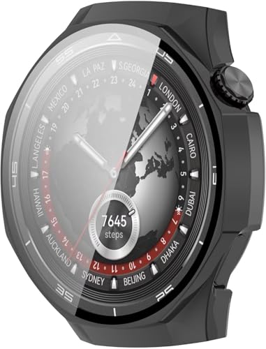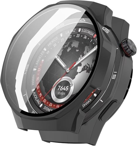 ELMO3EZZ - جراب متوافق مع ساعة هواوي جي تي 5 برو 46 ملم، بولي كربونات + شاشة مدمجة بطبقة مقوى، مضاد للسقوط، جراب ساعة متوافق مع هواوي GT 5 برو 46 ملم (أسود)