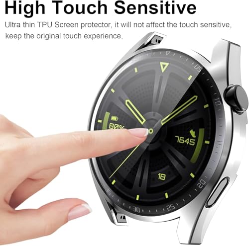 Generic - واقي هيكل متوافق مع ساعة هواوي جي تي 3 46 ملم شاشة HD رفيع وناعم للغاية من مادة بولي يوريثين المقاوم للحرارة للحماية الصدمات - فضي