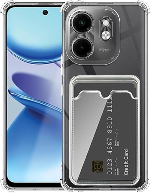 Generic - جراب موبايل شفاف بتصميم محفظة متوافق مع انفينيكس سمارت 9 / هوت 50i ، بفتحة للبطاقات وتصميم نحيف واقي ناعم من البولي يوريثين الحراري المقاوم للصدمات مع حامل بطاقات لطيف - شفاف