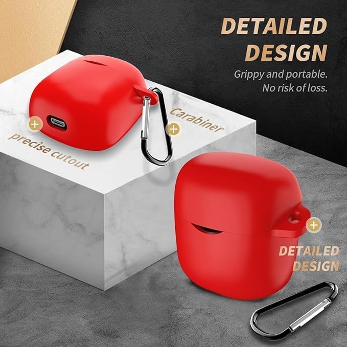 Generic - جراب متوافق مع جيه بي ال تون 225/220TWS، جراب سيليكون [مع حلقة] مقاوم للخدش والصدمات (Red, JBL TON 225/220TWS)