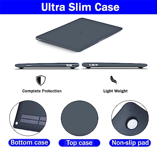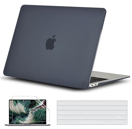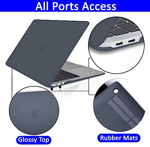 RKINC - حافظة متوافقة مع ماك بوك برو 13 انش، ريكينج اصدار 2016-2023 M1 M2 A2338/ A2289/ A2251/ A2159/ A1706/ A1989 مع غلاف بلاستيكي صلب وغطاء كيبورد وواقي شاشة (اسود غير لامع)
