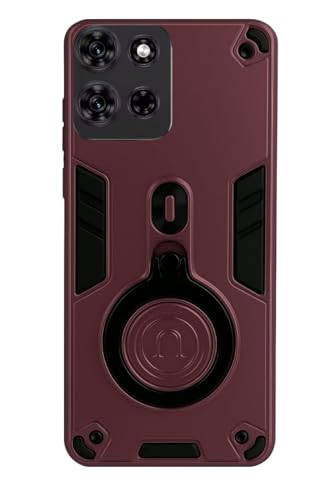 Generic - جراب حماية مزدوج الطبقات مقاوم للصدمات، غطاء صلب مدرع مع مسند حلقي دوار 360 درجة وقاعدة مغناطيسية للسيارة متوافق مع موبايل موتو G75 (أحمر نبيذي)