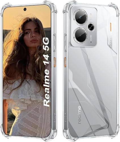 Generic - جراب حماية شفاف لموبايل ريلمي 14_ 14T شبكة الجيل الخامس 5G ناعم من البولي يوريثين الحراري والسيليكون ممتص للصدمات بزاوية معززة وحماية كاملة للكاميرا