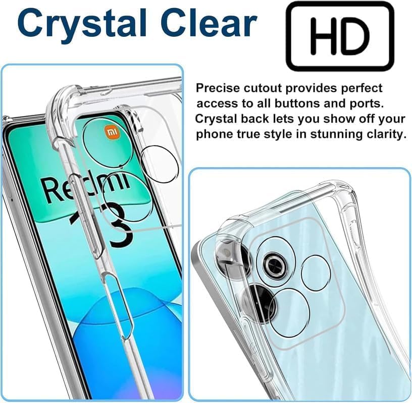 Generic - جراب حماية لموبايل ريدمي 13 4G _ 5G شفاف ناعم من البولي يوريثين الحراري والسيليكون ممتص للصدمات بزاوية معززة وحماية كاملة للكاميرا