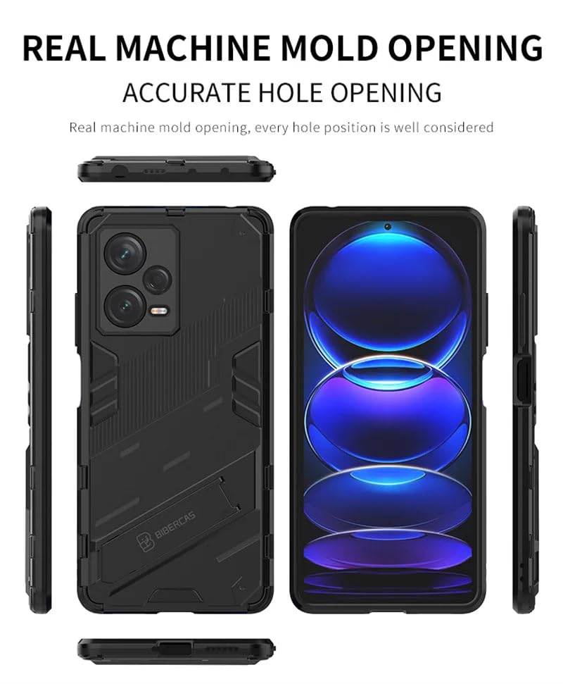Generic - جراب حماية متوافق مع موبايلRedmi Note 12 4G. حماية ممتاز مضاد للصدمات ويوفر حماية مزدوجة مع مسند وحماية للكاميرا- اسود