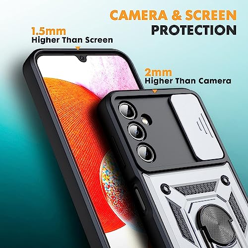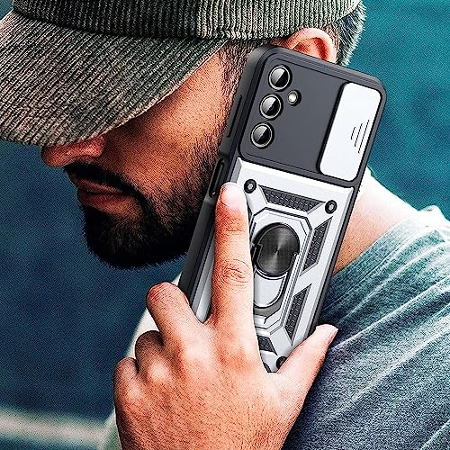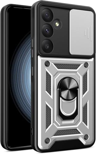 Generic - جراب متوافق مع سامسونج a36 كام شيلد حماية كاملة للجسم مضاد للصدمات بتصميم جذاب مع غطاء كاميرا وحلقة معدنية متعددة الوظائف (متوافق مع سامسونج a36) (فضي)