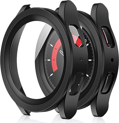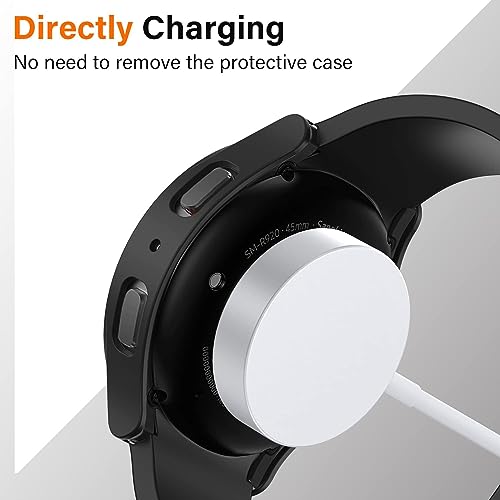 ELMO3EZZ - جراب حماية متوافق مع ساعة سامسونج جالاكسي 5 برو مقاس 45 ملم بدون شاشة اطار واقي من الصدمات البولي كربونات الصلب المضاد للخدش لاكسسوارات جالكسي المعز لون اسود