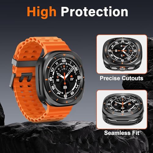 ELMO3EZZ - حافظة حماية متوافقة مع ساعة سامسونج جالاكسي 7 الترا 47 ملم، غطاء مصنوع من الألومنيوم بلون شفاف برتقالي
