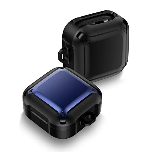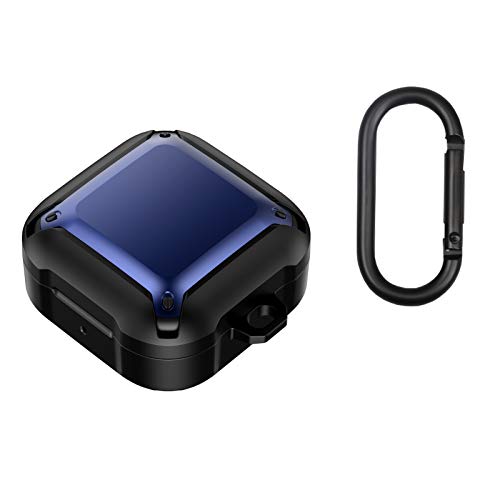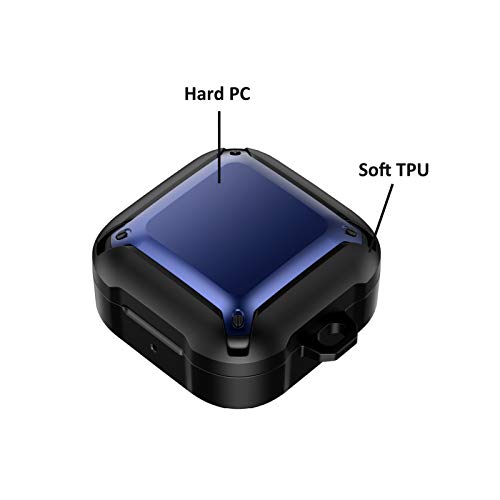 ilmobile - جراب علبة السماعات بتصميم مميز من السيليكون مزود بسلسة مفاتيح لسماعات جالاكسي بادز لايف 2020/ بادز برو 2021 (لون اسود وازرق)، لسماعات رأس