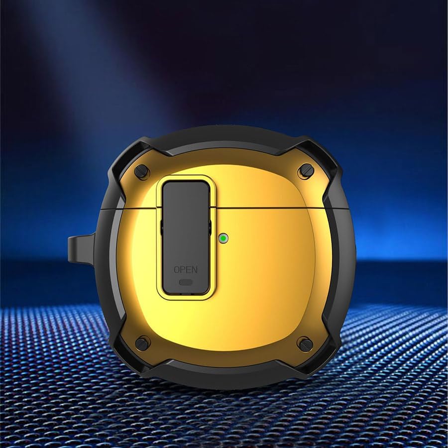 ELMO3EZZ - جراب حماية متوافق مع سماعات هواوي فري بودز 4، فري بودز 4 ترو اللاسلكية، جراب حماية لسماعات الأذن مع خطاف سلسلة مفاتيح، منفذ شحن يمكن الوصول إليه (أسود وأصفر)