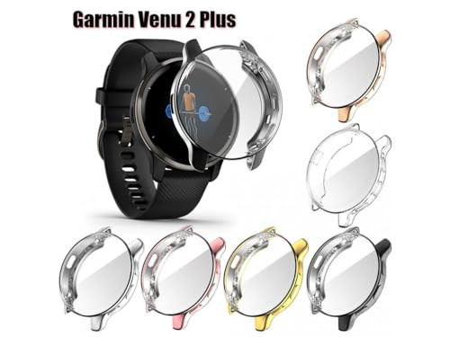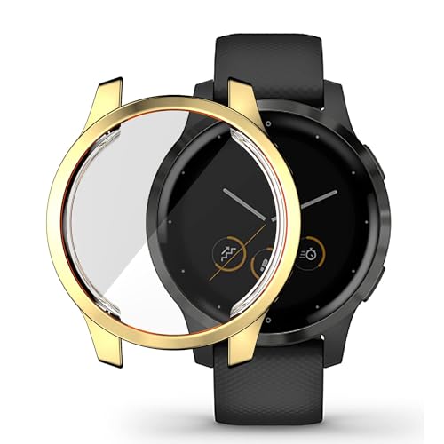 ELMO3EZZ - واقي شاشة ساعة كامل بولي يوريثين ناعم مقاوم للحرارة وممتص للصدمات متوافق مع جارمين فينو 2 بلس - لون ذهبي، من المعز