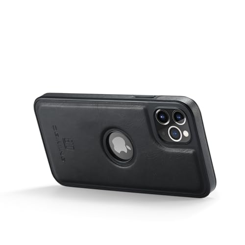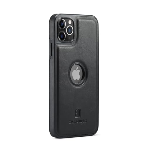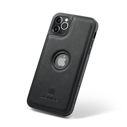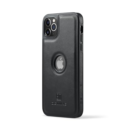 Generic - جراب حماية خلفي فاخر ريترو جلد صناعي بتصميم كلاسيكي مع فتحة شعار مضاد للصدمات متوافق موبايل آيفون 11 برو ماكس - لون أسود