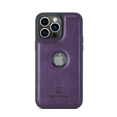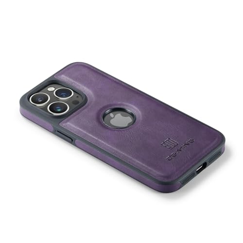 Generic - جراب خلفي فاخر من الجلد الصناعي بتصميم كلاسيكي مع فتحة شعار مضاد للصدمات متوافق ايفون 13 برو ماكس ارجواني