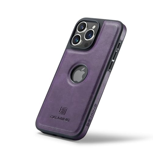 Generic - جراب خلفي فاخر من الجلد الصناعي بتصميم كلاسيكي مع فتحة شعار مضاد للصدمات متوافق ايفون 15 برو ماكس ارجواني
