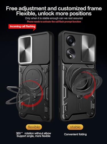 Generic - جراب حماية منزلق مقاوم للصدمات من البولي يوريثين الحراري مع حلقة سي دي كربونات متوافق موبايل أوبو رينو A58 شبكة الجيل الرابع 4G (أسود)