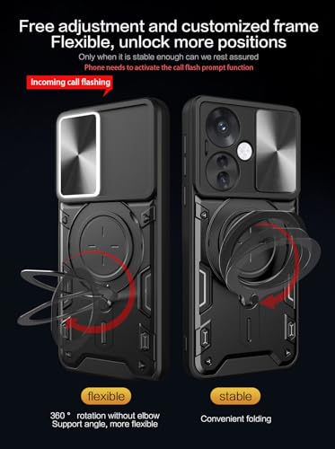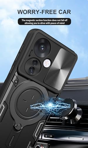 Generic - غطاء حماية مقاوم للصدمات من مادة TPU + PC CD Ring متوافق مع Oppo Reno 11F (أسود)