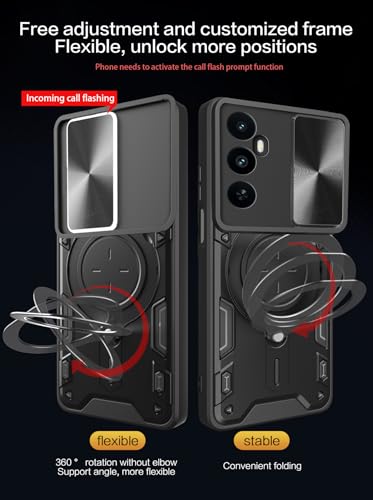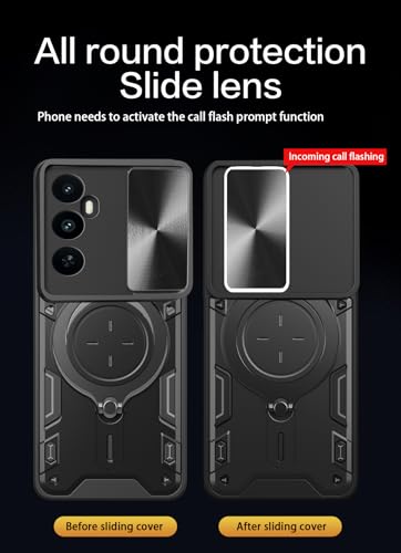 Generic - جراب حماية منزلق مقاوم للصدمات من البولي يوريثين المقاوم للحرارة مع حلقة سي دي من البولي كربونات متوافق مع موبايل ريلمي C65 شبكة الجيل الرابع 4G (أسود)