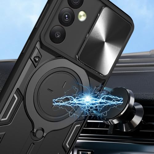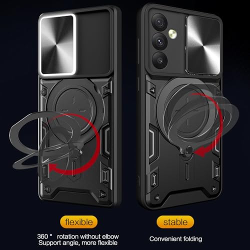 Generic - جراب حماية لموبايل سامسونج جالاكسي A34 مقاوم للصدمات ومصنوع من بولي يوريثين للحرارة وبولي كربونات ومزود بغطاء كاميرا منزلق وحلقة بتصميم حرفي CD أسود