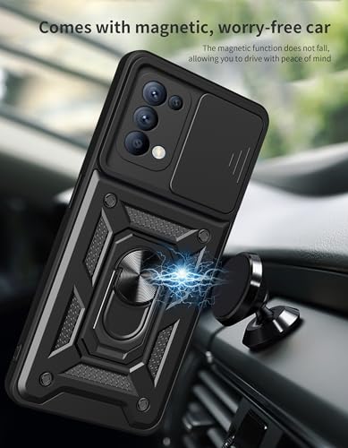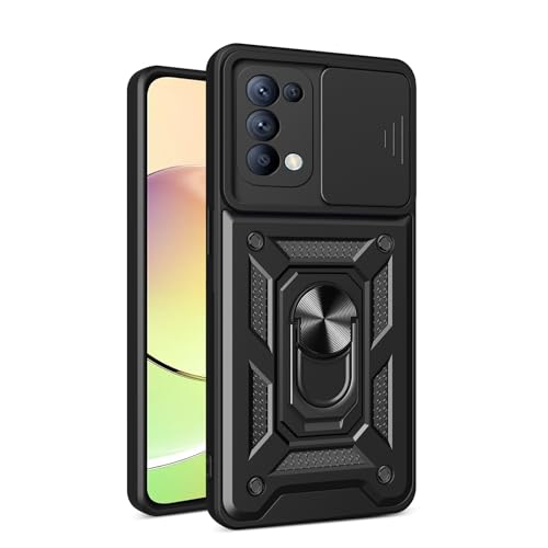 Generic - جراب حماية مقاوم للصدمات من البولي يوريثين الحراري والبولي كربونات بواقي كاميرا منزلق متوافق مع موبايل اوبو رينو 5 (اسود)