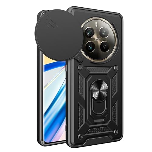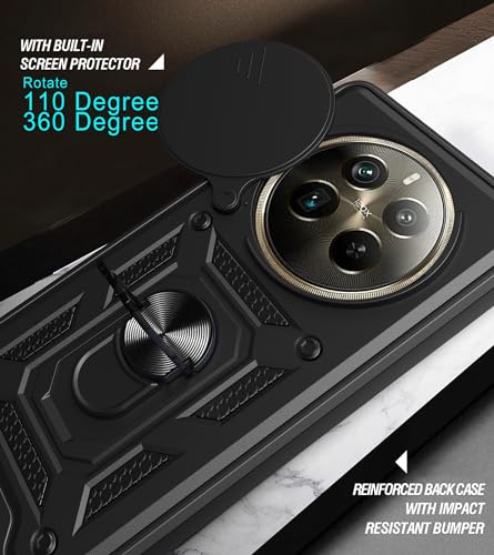 Generic - جراب حماية خلفي من البولي يوريثين المقاوم للحرارة والبولي كربونات بحلقة دائرية منزلقة لعدسة الكاميرا مقاوم للصدمات متوافق مع موبايل ريلمي 12 برو/ريلمي 12 برو بلس/ريلمي P1 برو (لون أسود)