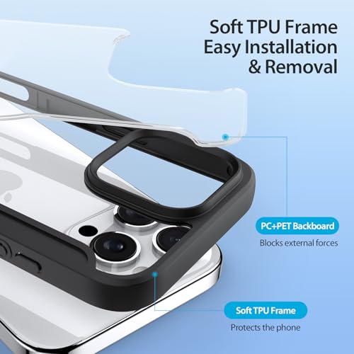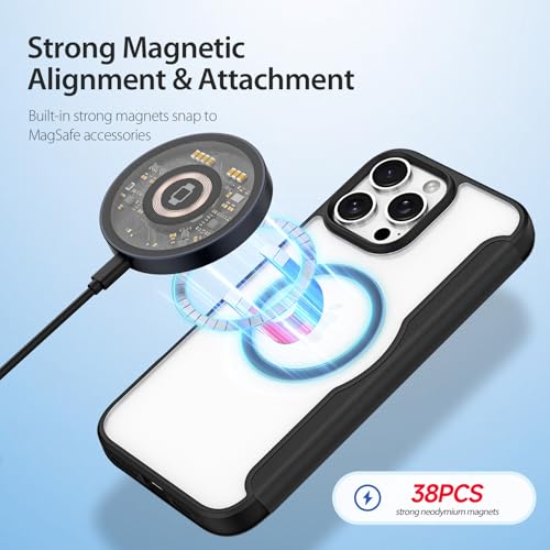 Generic - جراب خلفي صلب مقاوم للصدمات من البولي كربونات الناعم باطار مغناطيسي يوريثين الحراري وحامل بطاقات الشحن اللاسلكي مضاد للاصفرار للخدش متوافق مع ايفون 16 برو ماكس اسود