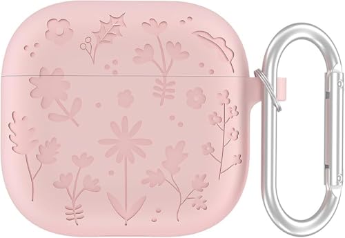 GQ - جراب حماية لسماعات ايربودز 4 مع سلسلة مفاتيح، غطاء حماية من السيليكون الناعم مضاد للصدمات بنمط زهور مطبوع بالليزر (وردي)