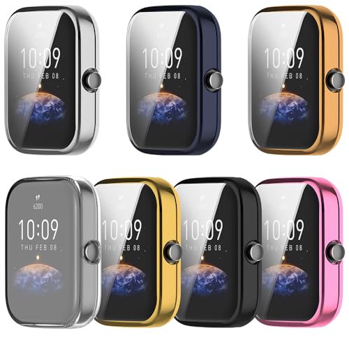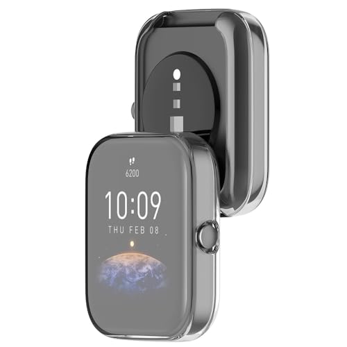 BYISYUE - حافظة حماية من السيليكون والبولي يوريثين المقاوم للحرارة مضاد للخدش والغبار مع لاصق حماية لساعة امازفيت بيب 3 وبيب 3 برو (شفافة)