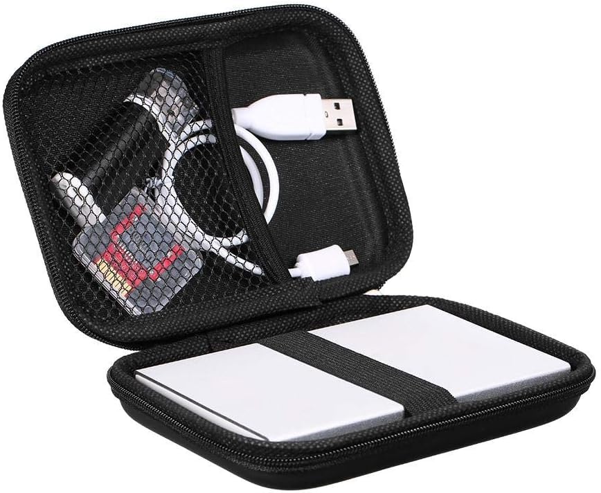 - حافظة للأقراص الصلبة الخارجية 2.5 حافظة حماية للقرص الصلب الخارجي مضادة للصدمات (أسود)، حافظة للأقراص الصلبة 2.5 انش وهارد SSD وبطانة ناعمة، حافظة صلبة من مادة ايفا وجيوب شبكية داخلية