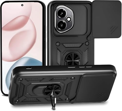 Generic - جراب شيلد لهاتف هونر 400 مقاوم للصدمات والخدوش حماية كاملة بتصميم جذاب مع غطاء للكاميرا وحلقة معدنية متعددة الوظائف للهاتف ( honor 400 cover ) (black)