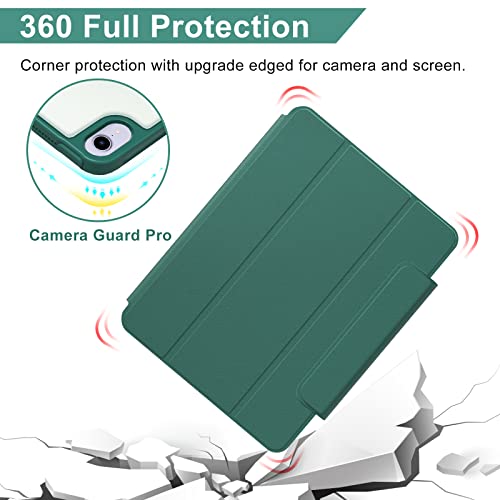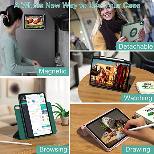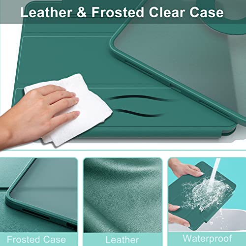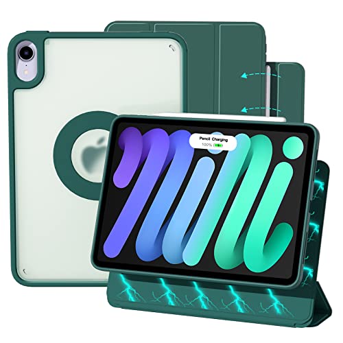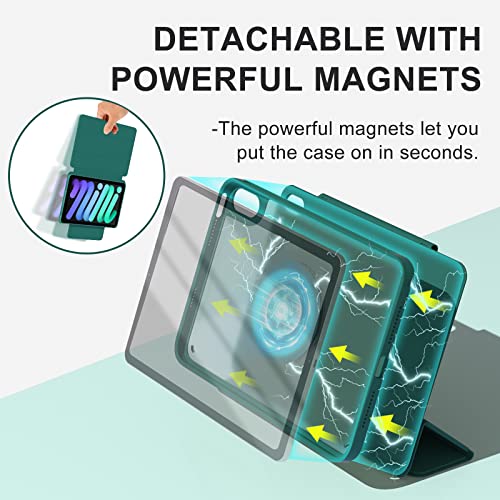 BLUTLOTUS - جراب لجهاز ايباد ميني 6 2021 الجيل السادس (8.3 بوصة)، جراب حماية شفاف 2 في 1 مضاد لبصمات الأصابع قابل للفصل يدور 360° مع مغناطيس قوي، غطاء واقي من الجلد قابل للغسل يدعم شاحن القلم (أزرق مخضر)