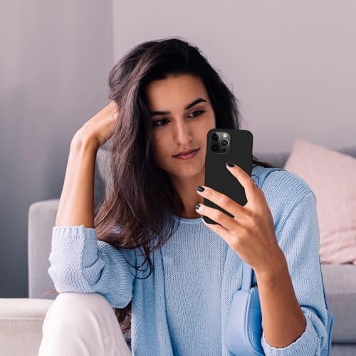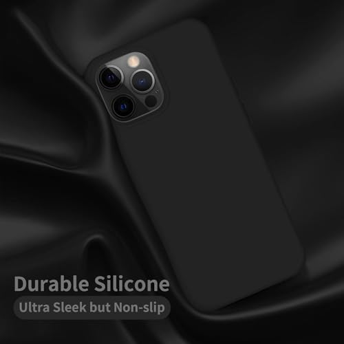 Generic - جراب حماية خلفي رفيع من جل السيليكون السائل الناعم يوفر حماية كاملة ضد الصدمات مع لمسة نهائية مطفية وبطانة من المايكروفايبر الناعم لموبايل آيفون 12 برو (أسود)