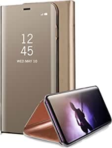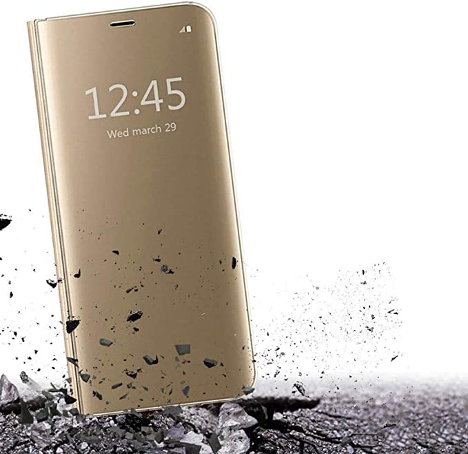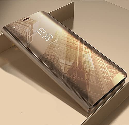 Generic - حافظة لهاتف ايفون 14 ليست ذكية عاكسة قابلة للطي بوظيفة الوقوف بطلاء عاكس لكامل الجسم 360 درجة غطاء حماية ذكي لموبايل ايفون 14 (ذهبي)، سيليكون