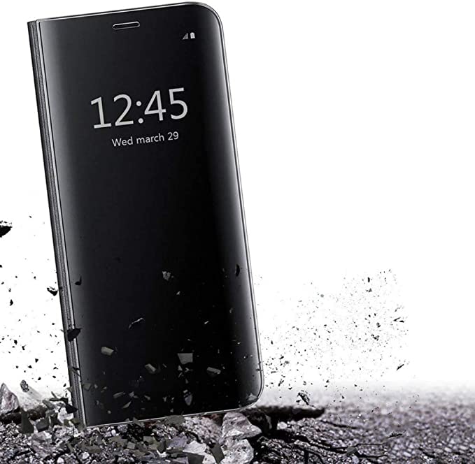 • حافظة لهاتف ايفون 14 برو ماكس، حافظة غير ذكية عاكسة قابلة للطي، وظيفة حامل طلاء عاكس لكامل الجسم 360 درجة، حافظة واقية لهاتف ايفون 14 برو ماكس (اسود)