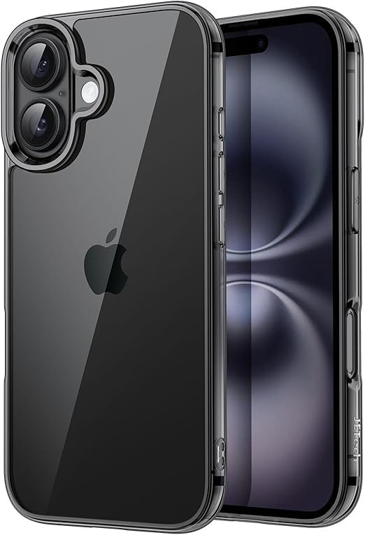- جراب مضاد للصدمات والاصفرار مع جزء خلفي شفاف مضاد للخدش متوافق مع موبايل آيفون 16 شاشة 6.1 بوصة (أسود)