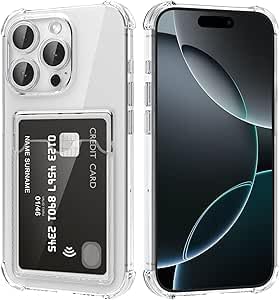 ELMO3EZZ - جراب حماية لموبايل ايفون 16 برو ماكس مع حامل كروت جراب شفاف مقاوم للخدش من السيليكون والبولي يوريثين المقاوم للحرارة