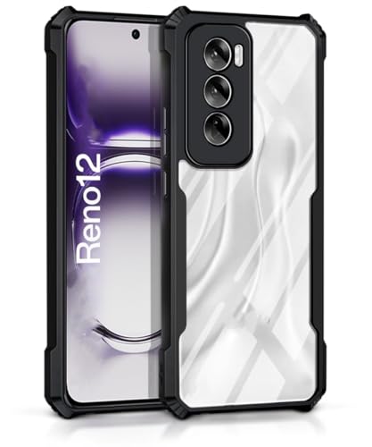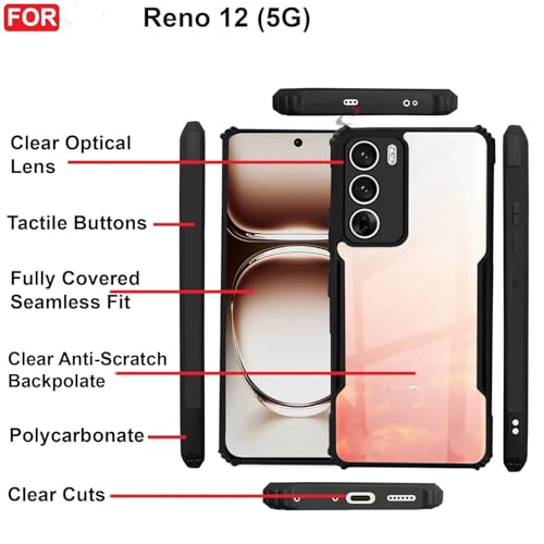 Generic - جراب لموبايل اوبو رينو 12 (غطاء اوبو رينو 12) شفاف مضاد للصدمات ومضاد للخدش لحماية الكاميرا بالكامل باطار ناعم (غطاء اوبو رينو 12) (اسود)