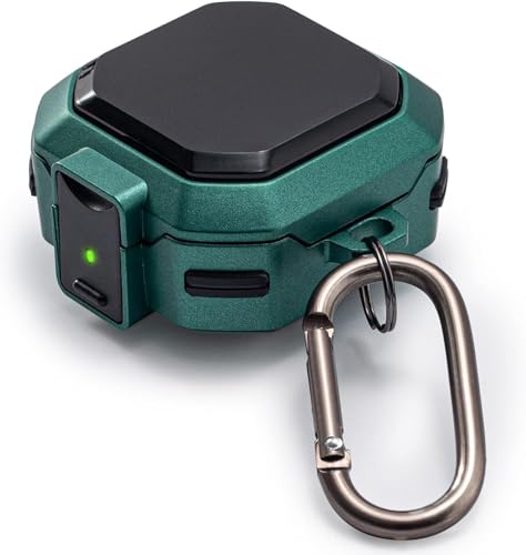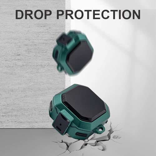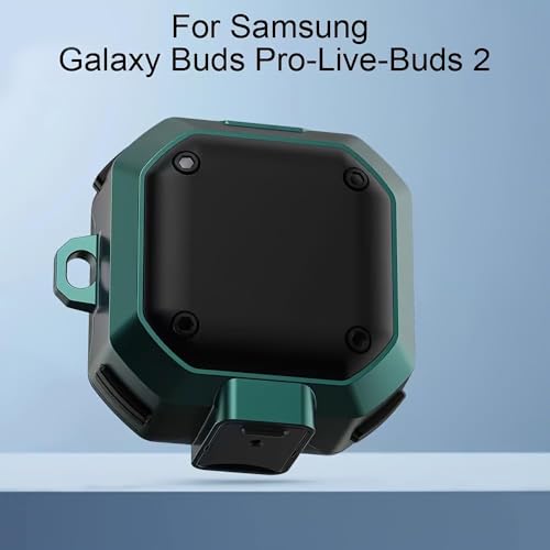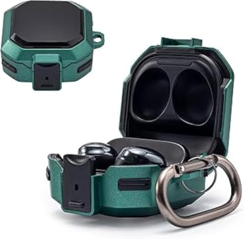 ELMO3EZZ - علبة من الجلد لحماية سماعات سامسونج جالاكسي بودز 2/ جالاكسي بودز برو/ جالاكسي بودز لايف مع قفل آمان، مضادة للصدمات مع سلسلة مفاتيح للرجال والنساء من المعز (لون اخضر)