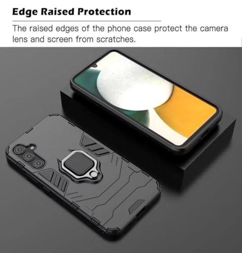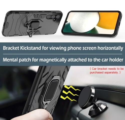 Generic - جراب لموبايل سامسونج جالاكسي A15 حامل حلقي دوار 360 درجة موبايل مضاد للصدمات من البولي يوريثين الحراري-البولي كربونات غطاء حماية كامل للهيكل أسود
