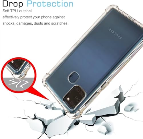 Generic - جراب شفاف ناعم لموبايل سامسونج جالاكسي A21S من البولي يوريثين المقاوم للحرارة والسيليكون الممتص للصدمات بزوايا معززة لحماية الكاميرا بالكامل