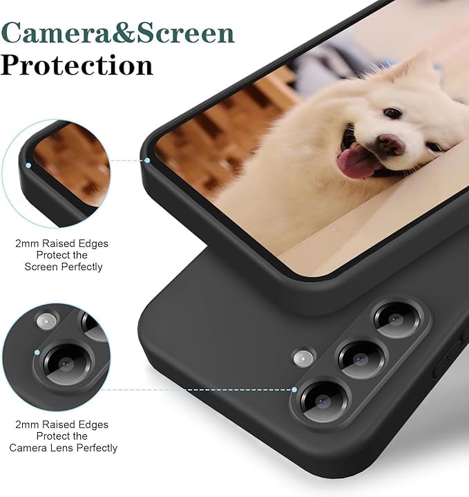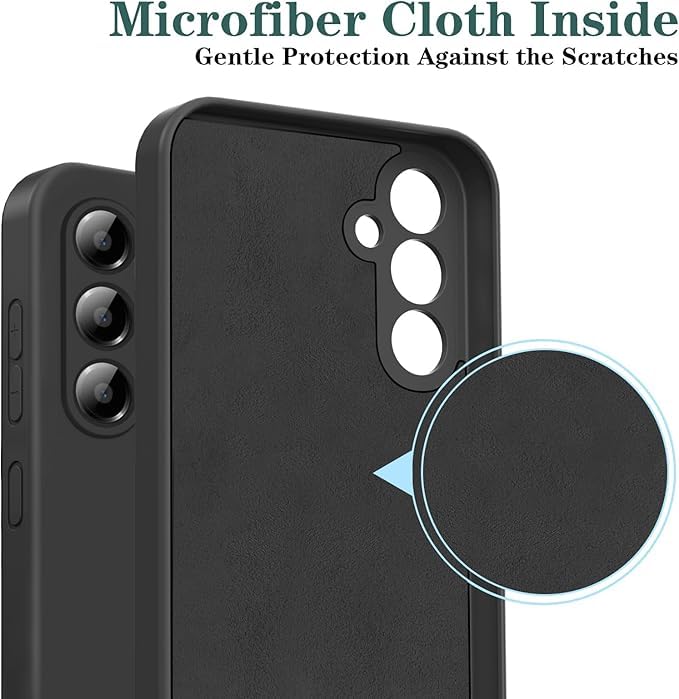 - حافظة لهاتف سامسونج جالاكسي A55، حافظة من السيليكون السائل عالي الجودة، حافظة حماية شاملة للهاتف المحمول، مقاومة للخدش، بطانة ناعمة من الألياف الدقيقة (أسود)