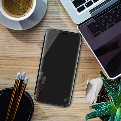 Generic - جراب حماية قابل للطي مع مسند لموبايل سامسونج جالاكسي S23 بلس، جراب حماية كامل مضاد للصدمات مع مراة مكياج لموبايل سامسونج جالاكسي S23 بلس شبكة الجيل الخامس 5G (S23 بلس، اسود)، جلد صناعي بولي كربونات
