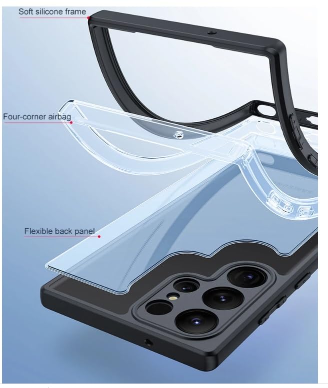 Generic - جراب سيليكون شفاف مع حماية للكاميرا وفلتر ميكروفون رفيع للغاية ومضاد للصدمات لموبايل سامسونج جالاكسي S24 الترا، أسود