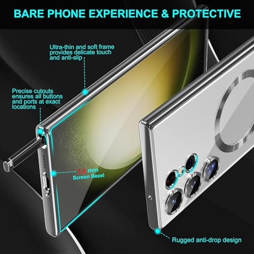 GRABIST - جراب موبايل ناعم مقاوم للصدمات من البولي يوريثين المقاوم للحرارة مع حماية كاملة لعدسة الكاميرا متوافق الشحن اللاسلكي لموبايل سامسونج S24 الترا جرابيست رمادي تيتانيوم مصد