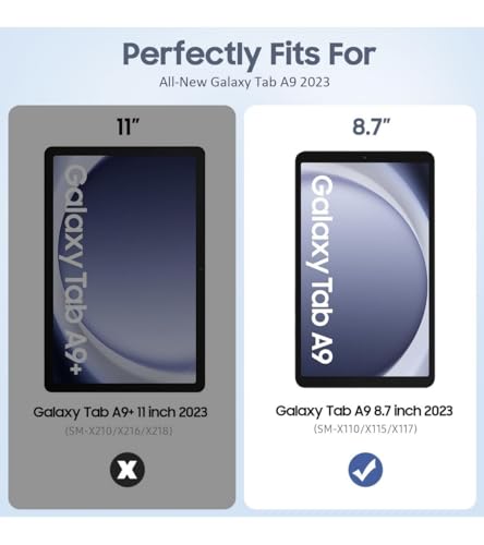 - 【توافق مثالي】 مصمم خصيصًا لسامسونج جالاكسي تاب A9 الجديد كليًا مقاس 8.7 بوصة إصدار 2023 SM-X110/X115/X117. ملاحظة: لا يتناسب مع أي طراز تابلت آخر. يرجى التحقق من الجزء الخلفي من التابلت الخاص بك للعثور على رقم الموديل.