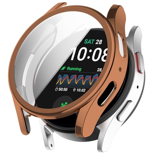 BYISYUE - جراب من السيليكون والبولي يوريثين المقاوم للحرارة مع واقي شاشة بتصميم مقاوم للخدش والغبار لساعة سامسونج جالاكسي 7 44 ملم (وردي)