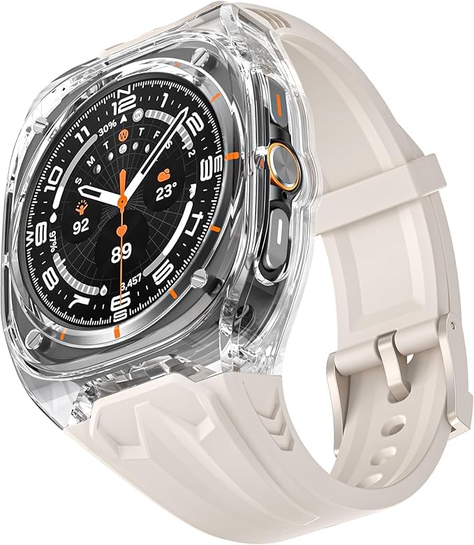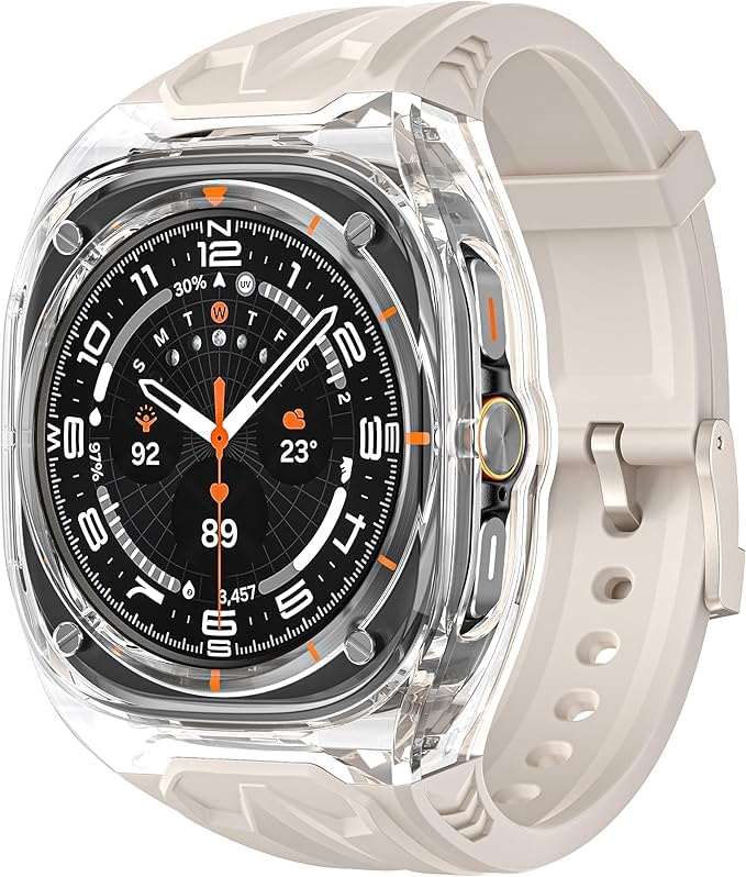 - حماية عالية وحساسية بدون عوائق: استمتع بحماية فائقة للشاشة مع إطار معدني مرتفع يساعد على الحماية من الخدوش والصدمات. يحافظ التصميم المحسن لهيكل ساعة جالكسي الترا على استجابة الساعة لللمس، مما يضمن التمرير السريع والنقرات والنظرات دون انقطاع - بدون احتجاز الرطوبة أو التنازلات.