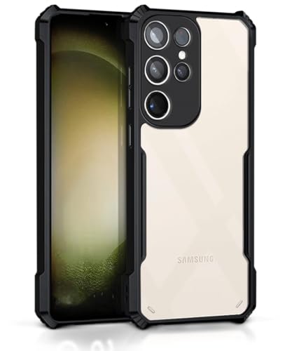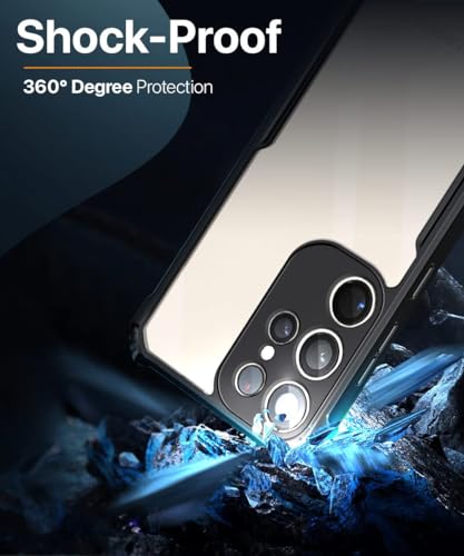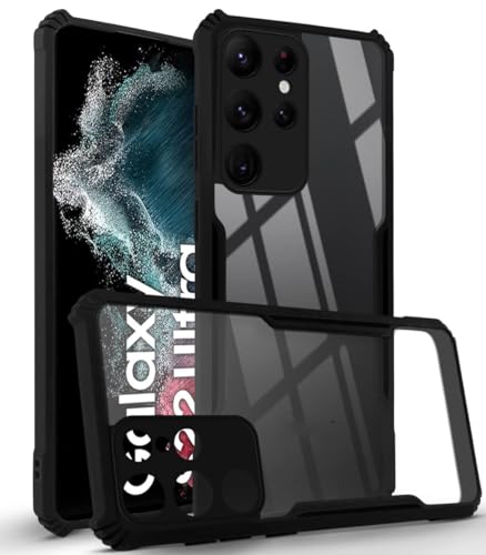 Generic - جراب لموبايل سامسونج S22 الترا (متوافق مع سامسونج S22 الترا كوفر) شفاف مضاد للخدش والصدمات لحماية الكاميرا بالكامل باطار مرن (اسود)