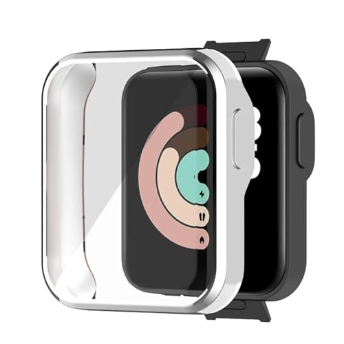 BYISYUE - جراب لساعة شاومي مي ووتش لايت، طبقة واقية، غطاء واقي للشاشة من السيليكون والبولي يوريثين الحراري، جراب حماية مضاد للخدش والغبار لساعة ريدمي (فضي)