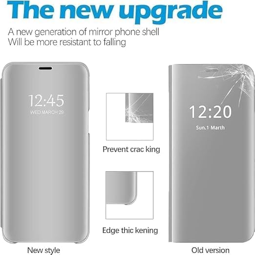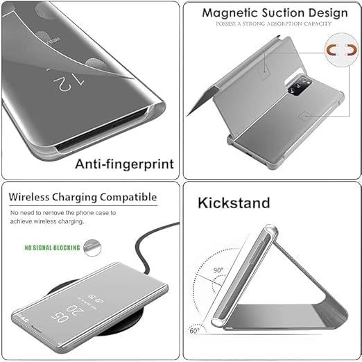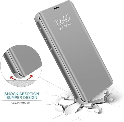 ELMO3EZZ - جراب حماية بتصميم كتاب قابل للطي شفاف مع حامل مطلي بالكهرباء وغطاء واقي يغطي كامل هيكل الموبايل لآيفون 13 برو ماكس (فضي)