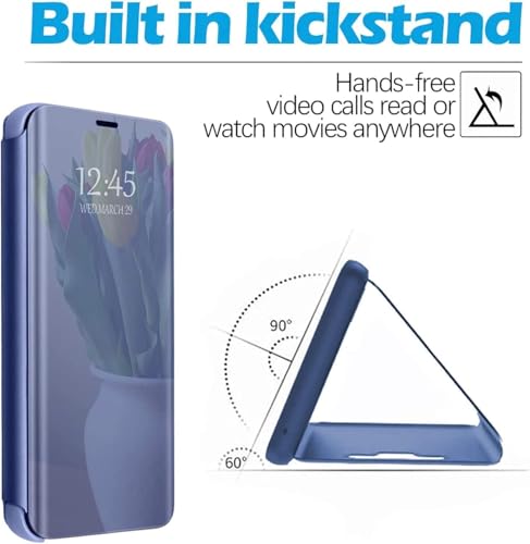 - 【تصميم أنيق】: - تصميم عصري: تصميم مرآة عصري متقن، يجعل موبايلك يبدو مميزًا ورائعًا. يتميز الجراب القابل للطي بمرآة عاكسة بتصميم فاخر ورفيع، لأن المرآة مطلية بطبقة لامعة يمكن استخدامها كمرآة مكياج.